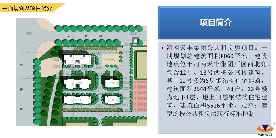 新乡高新区火炬园创新研发中心,由天丰集团EPC总承包建设。创新研发中心集办公、研发、科研为一体的综合办公楼;由A、B建筑组成,在二层由连廊相连接,A、B两座建筑物占地面积4311.70平方米,地上五层,地下一层,建筑高度22.07米,总建筑面积29788.15平方米。主体结构采用钢框架结构,楼面采用钢筋桁架楼承板组合楼板,外墙采用天丰自主研发的高档装饰保温一体化金属幕墙板和玻璃幕墙,屋面采用天丰自主研发的光伏建筑一体化昱板。