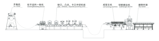 开卷—入料导正—较平——成型—切断--出料